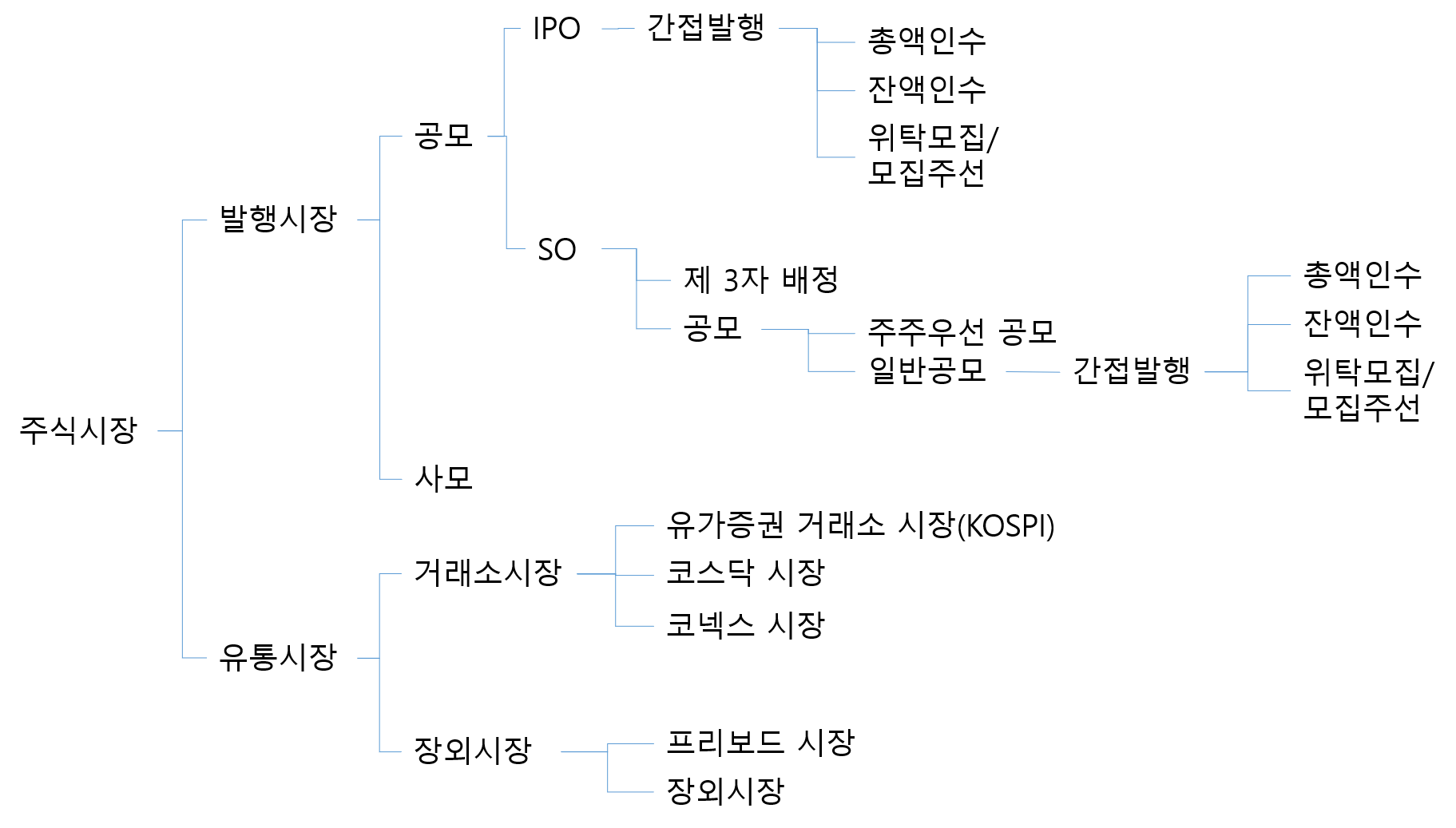 주식시장은 크게 발행시장과 유통시장으로 나뉩니다. 한 눈에 보기 쉽게 표로 정리해 보았습니다.