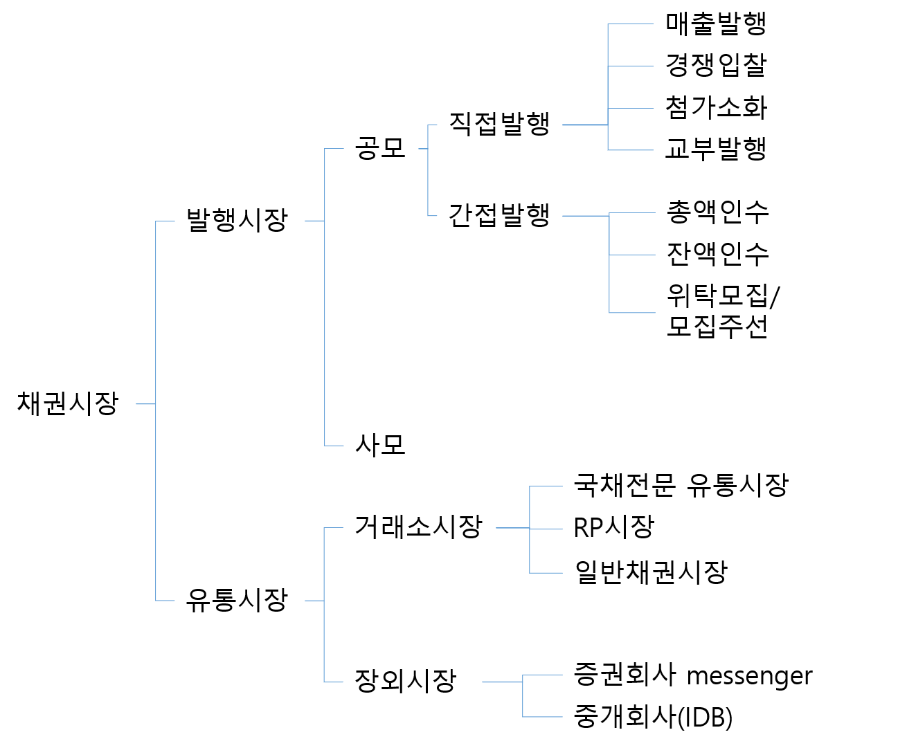 채권시장은 발행시장과 유통시장으로 나눕니다.