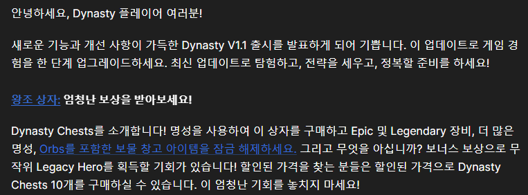 현재 게임은 Dynasty 버전1.1을 플레이중인데요