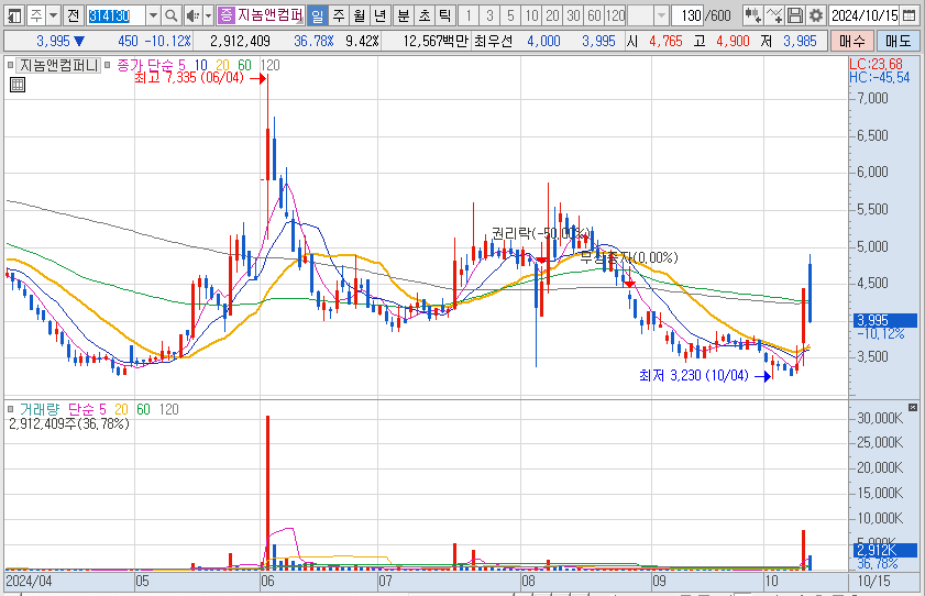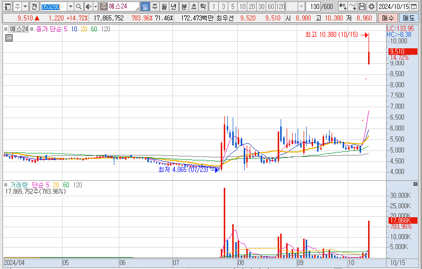 종이, 복사지 밀크를 만드는 회사입니다. 한강의 책을 만든 종이라고 하여 한강 관련주로 상한가를 갔습니다.