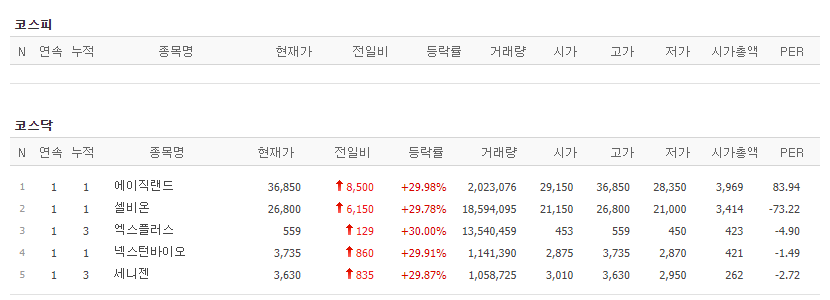 오늘의 상한가 알아보겠습니다.