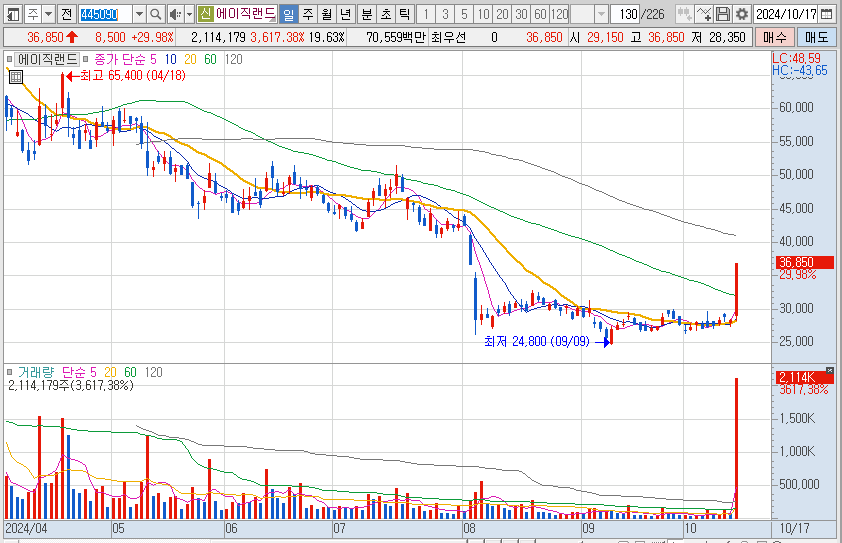 10월 17일 오늘의 상한가