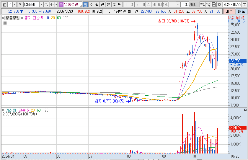 영풍정밀 역시 고려아연 경영권 분쟁 관련주입니다.