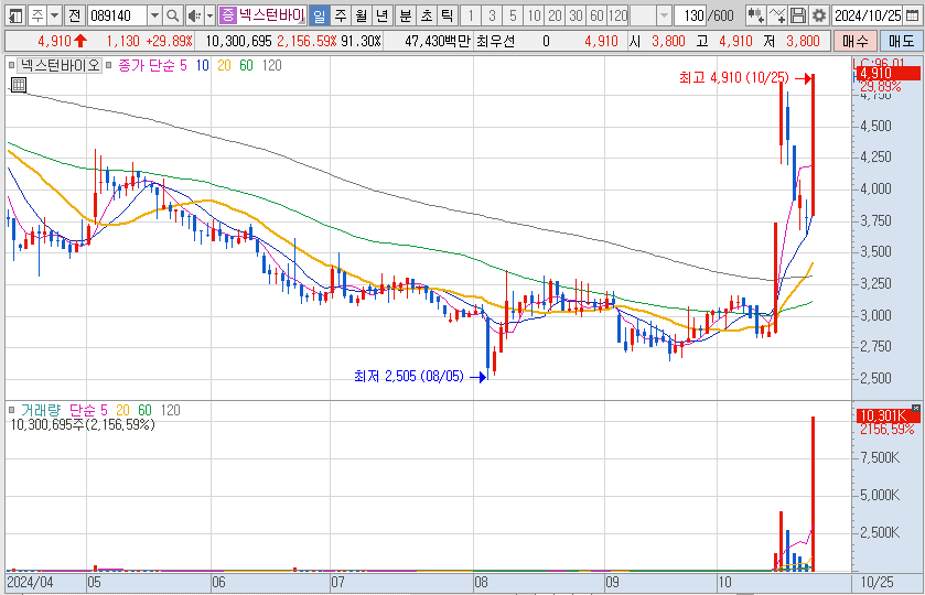 넥스턴바이오 주가가 시간외 매매에서 급락했다.25일 한국거래소에 따르면 전일 시간외 매매에서 넥스턴바이오 주가는 전거래일보다 1.19% 내린 3735원에 거래를 마쳤다. 넥스턴바이오의 시간외
