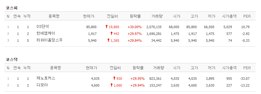 | 10월 30일 오늘의 상한가 (0) | 2024.10.30 |
