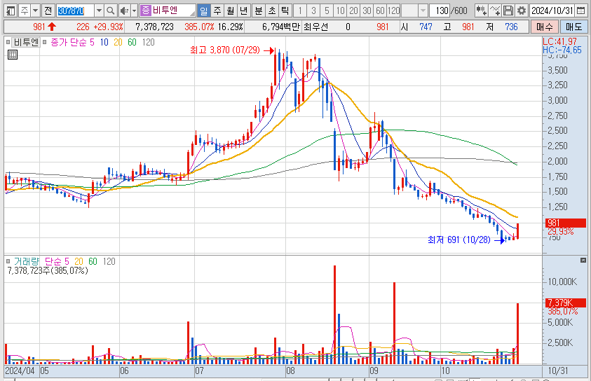 구글 등 빅테크 기업의 실적 기대감에 ai 및 빅테이터 전문기업인 비투엔이 수혜를 받을 기대감으로 상한가를 갔습니다.