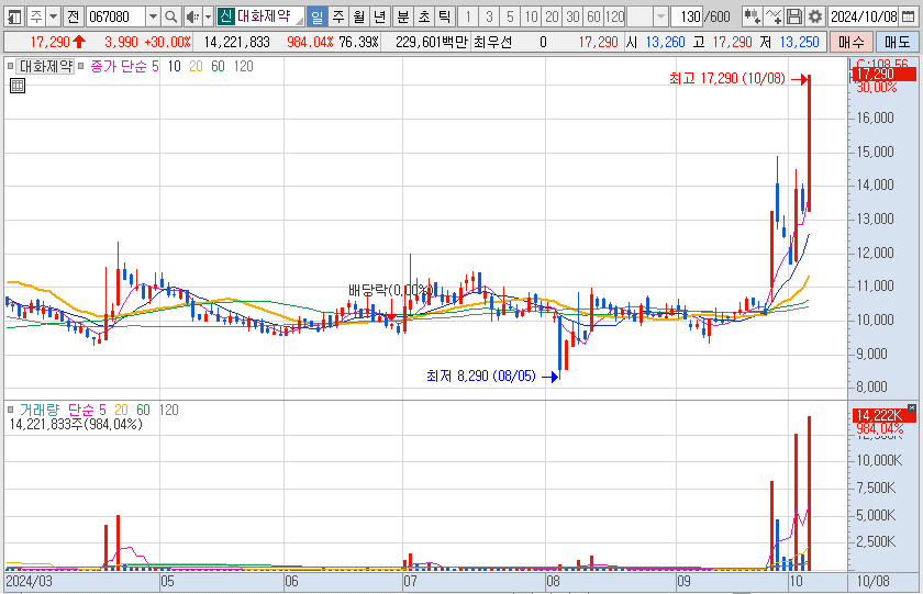중국에서 마시는 위암치료제인 리포락셀이 시판허가를 받았는데 이 치료제의 원료물질 관련 특허를 보유했다는 소식에 상한가를 갔습니다.