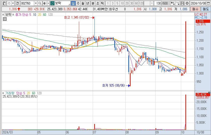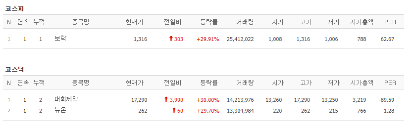 1주당 가액을 100원에서 1000원으로 주식병합을 결정한 소식에 상한가를 갔습니다.