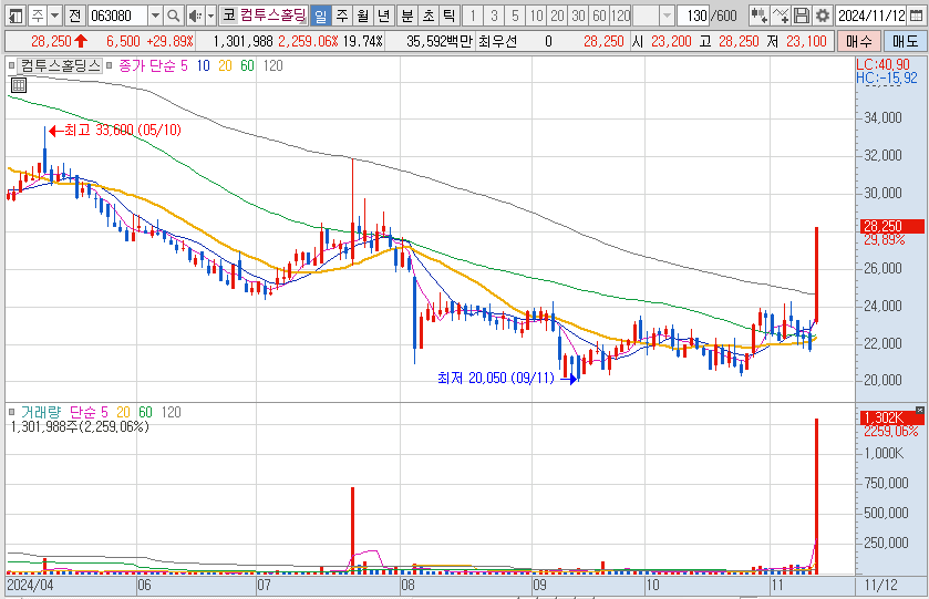 비트코인 급등세에 코인원 지분을 보유한 컴투스홀딩스가 상한가를 갔습니다.
