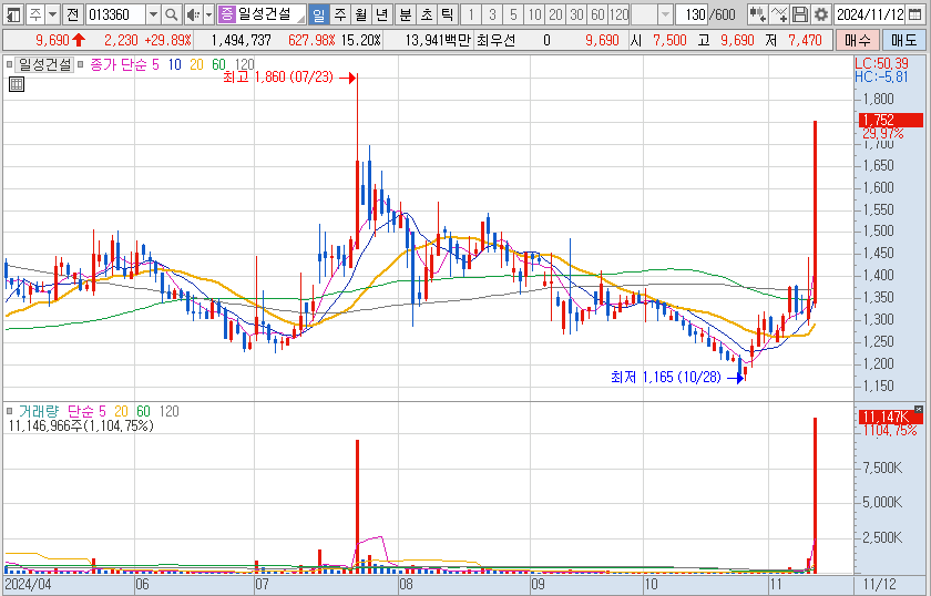 우크라이나 재건 관련주이며 서울시의 서울철도 68km 지하화 사업의 수혜주로 부각되어 상한가를 갔습니다. 토목건축 공사업을 주로 하고 있습니다.