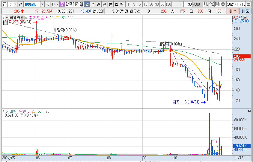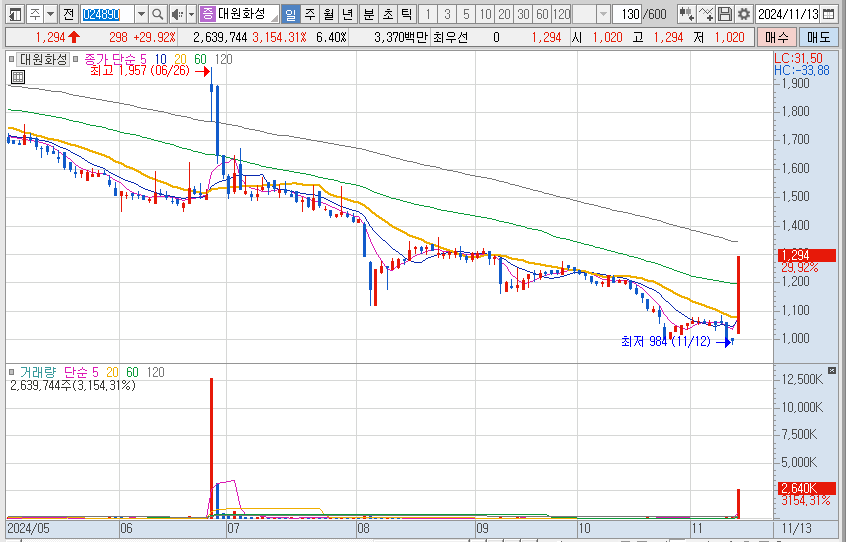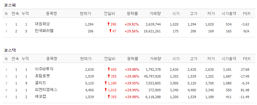 어제에 이어 연속 2일 상한가를 갔습니다. 특별한 공시는 없습니다.