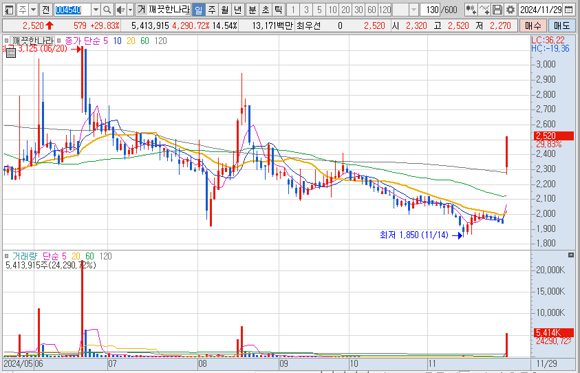 | 12월 2일 오늘의 상한가 (0) | 2024.12.02 |