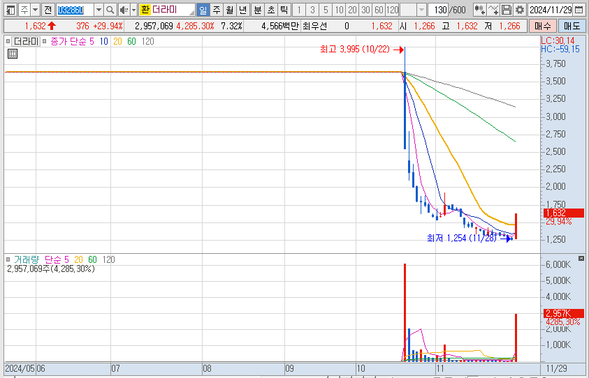 거래중지였던 주식으로 2년 7개월만에 10월 22일 거래재개한 바 있습니다. 특별한 이슈나 공시는 없는것으로 보입니다.