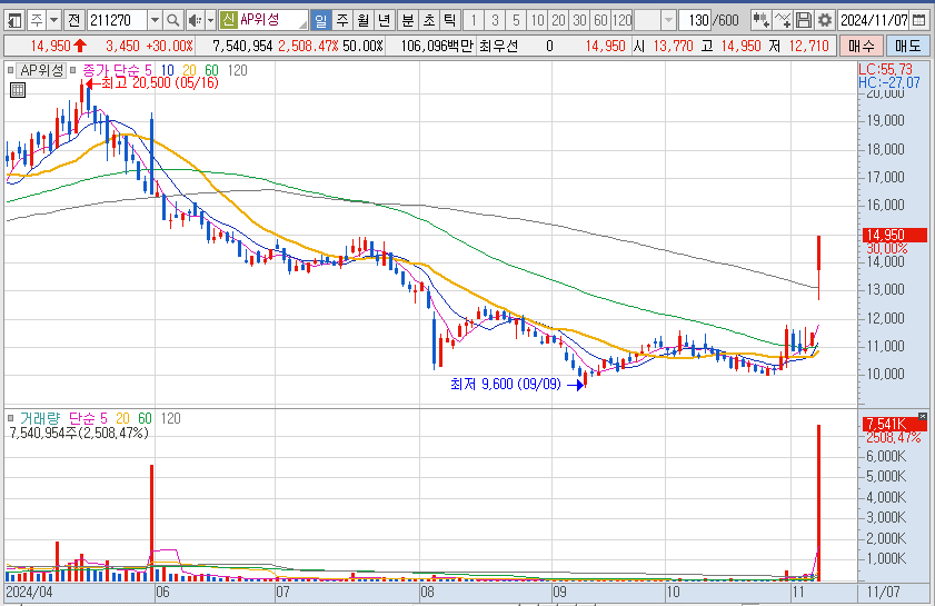 우주 항공 관련주인데요. 트럼프 당선으로 그를 도왔던 일론머스크의 스페이스X와 우주사업이 수혜를 입을 수 있다는 기대감으로 국내 관련주도 상한가를 갔습니다.