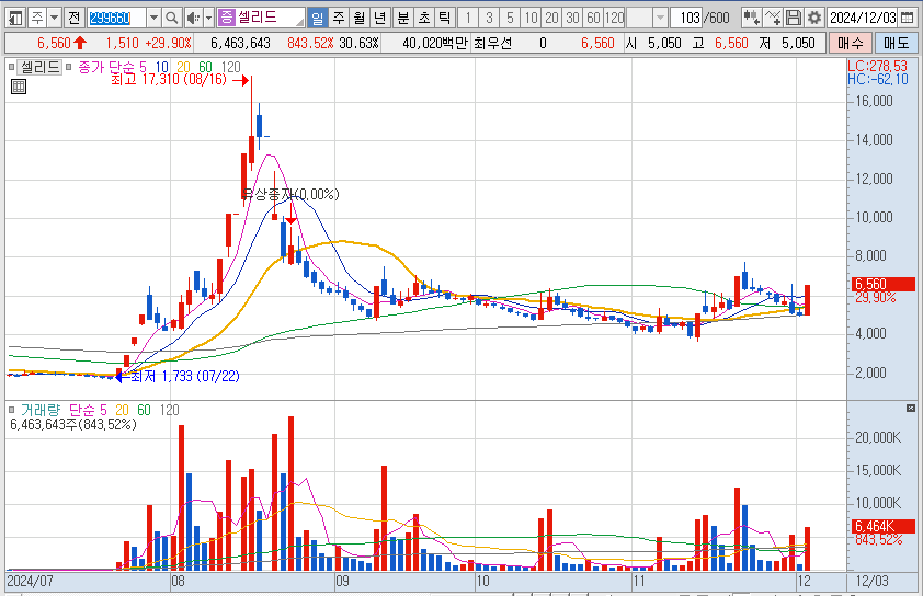3분기 매출과 실적 개선으로 역대 최대 실적 기대감을 내비치며 상한가를 갔습니다.