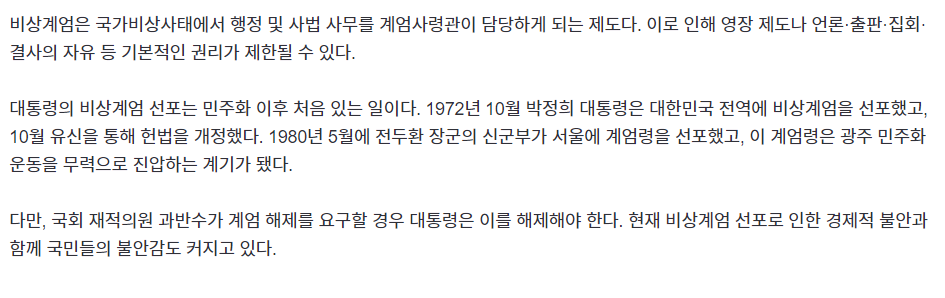 12월 3일 23시 비상계엄령이 선포되었습니다. 아래와 같습니다.