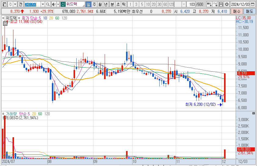 | 12월 5일 오늘의 상한가 (0) | 2024.12.05 |