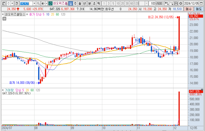 그리고 비트코인 급등으로 업비트 운영사인 두나무에 29억원 초기투자했다는 것으로 상한가를 갔습니다.