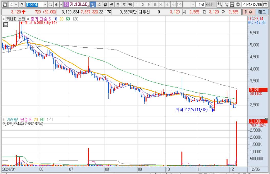 | 12월 5일 오늘의 상한가 (0) | 2024.12.05 |