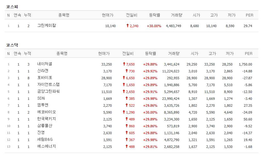 : 그린케미칼, 에코바이오, 에스에너지, 금양그린파워, 삼륭물산, 한국팩키지, 진영, 세림B&G, 포바이포