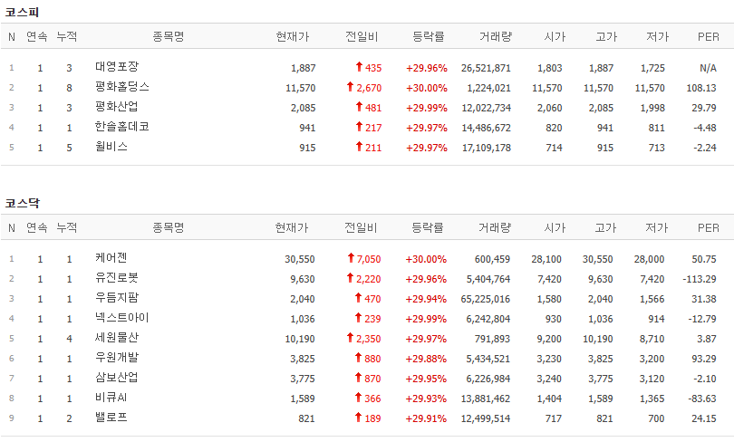5월 12일 오늘의 상한가