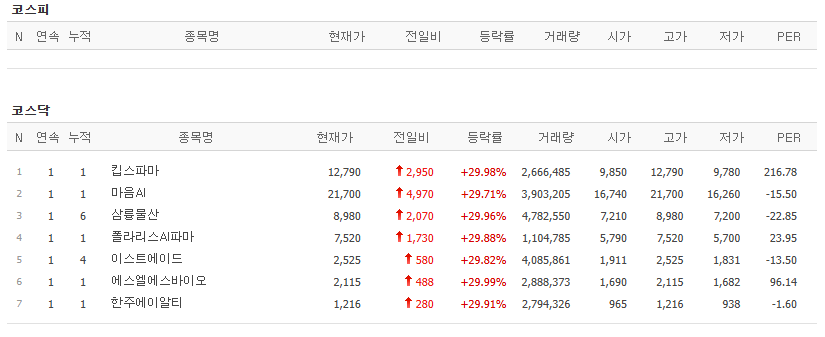 5월 9일 오늘의 상한가