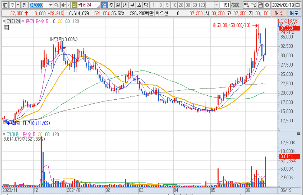카페 24 주식은 저의 대학교 생활을 떠올리는 주식인데요. 2017년이었나. 상장 당시에 대학 재학중이었는데 재무과목이었을거에요. 오늘의 발표주제로 2배갈거라고 했던..ㅋㅋㅋㅋ 그때나 지금이나 재테크에 관심많았었네요.