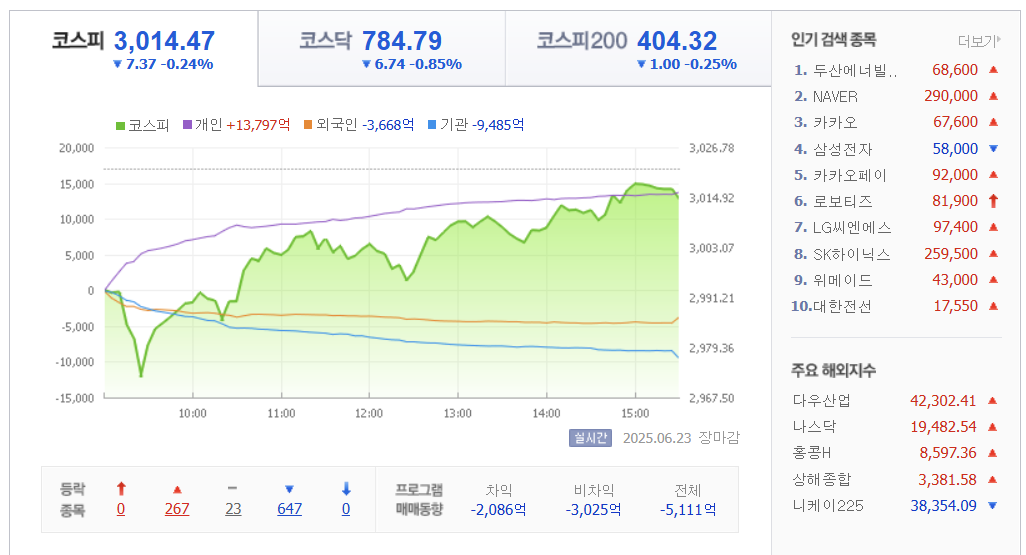 코스피는 미국의 이란 공격과 이란의 호르무즈 해협 봉쇄 의결 등 중동 지정학적 리스크로 약보함 마감했습니다. 3014