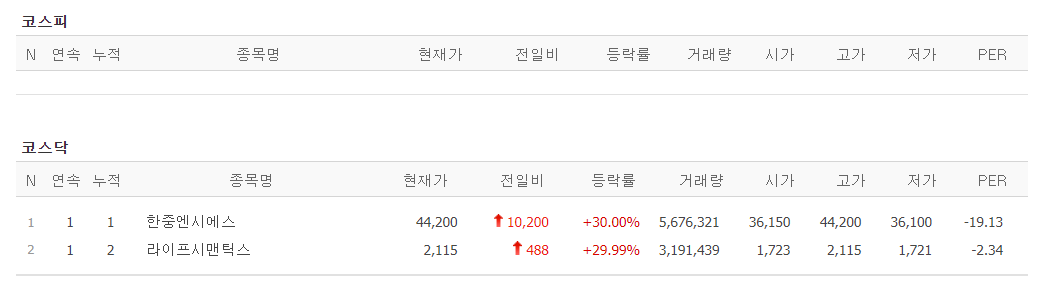 오늘의 상한가 6월 25일 불타는 화요일이었습니다.