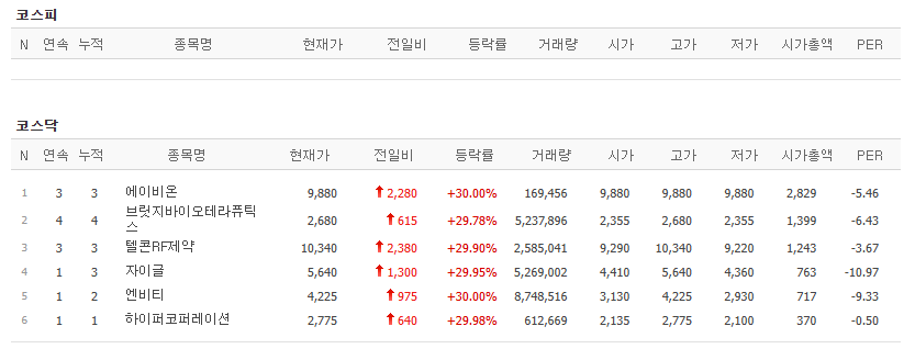 상한가 알아보겠습니다.