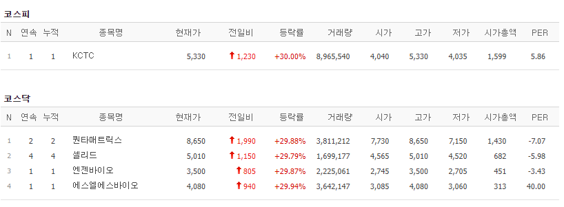오늘 상한가 종목 중에 2종목은 이미 어제도 상한가인 종목이었는데요.