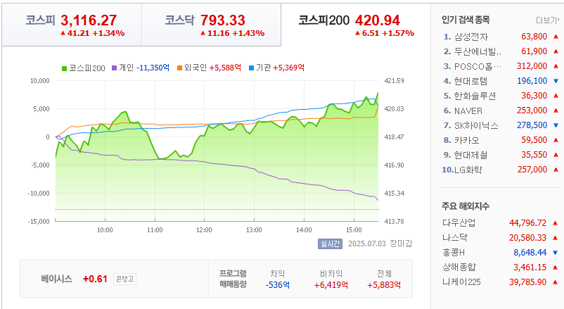 상법 개정안 국회 통과 소식과 미국-베트남 무역협상 타결 등의 대형 호재로 인해 증시에도 좋은 영향을 끼쳤습니다.