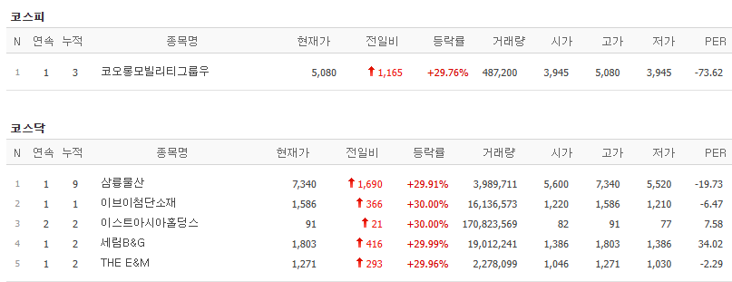 상한가 종목을 살펴볼텐데요.