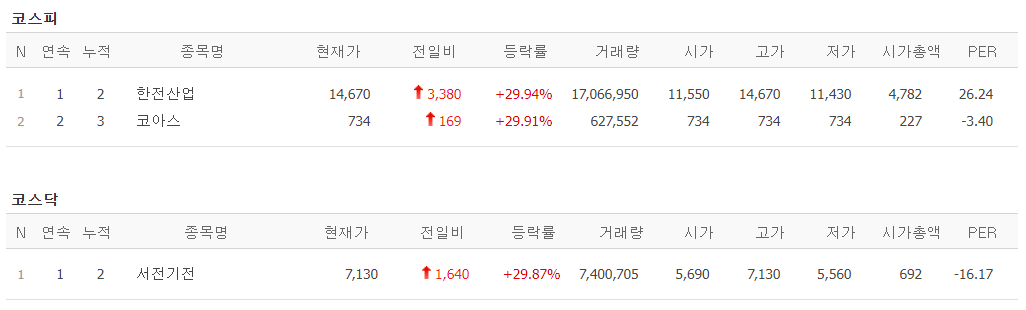 바로 오늘의 상한가 종목 한 번 보실까요?