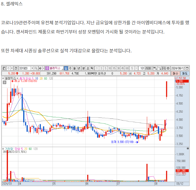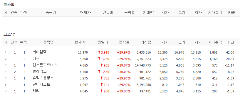 오늘의 상한가 시작합니다.