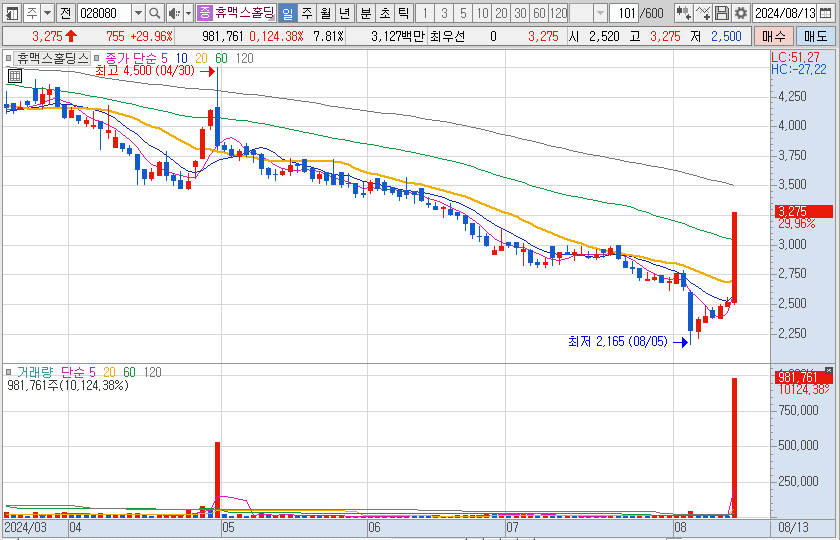 전기차 종합대책 관련주입니다. 별다른 공시는 없으나 지난 4월 kt와 IPTV 단말 검증용역 계약을 한바 있어서 실적 개선 기대감도 있는 것 같습니다.