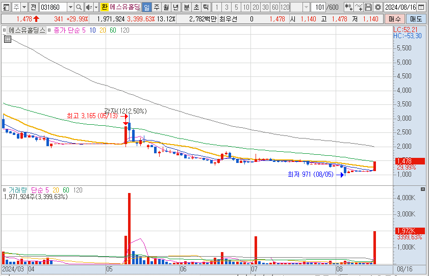 코로나 관련주이면서 엠폭스 치료제 관련주입니다. 파미셀이 생산한 브린시도포비어가 엠폭스 치료제로 쓰이고 미국 FDA승인을 받았다고 합니다. 2분기 실적 또한 289% 증가한 영업이익 22억언을 기록하고 픅자전환에 성공했다고 합니다.