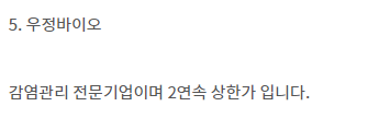 코로나와 엠폭스 관련주이지요. 시총이 적은 관계로 3연상을 간 것으로 보입니다.