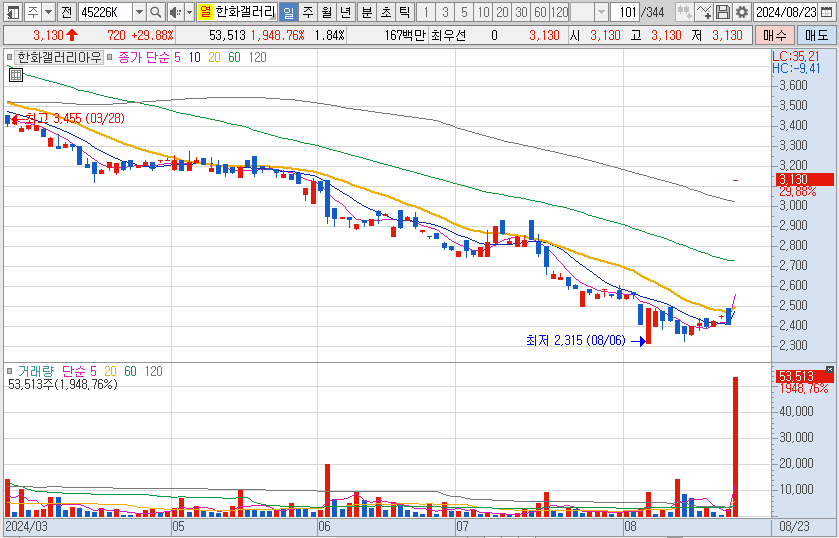 한화의 삼남인 김동선씨가 한화갤러리아를 공개매수하면서 상한가를 갔네요