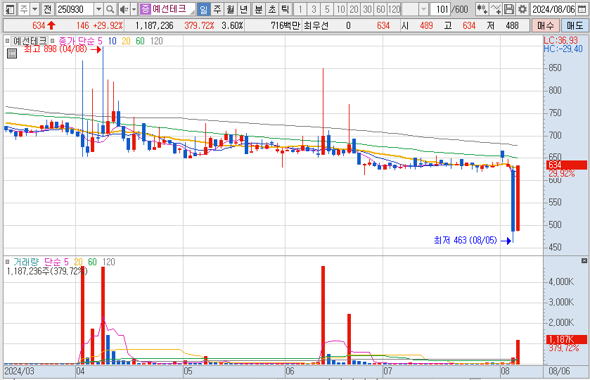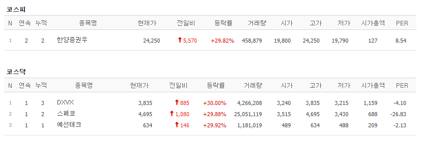 어제에 이어 연속 상한가를 달성했네요. 인수합병 이슈가 있지요
