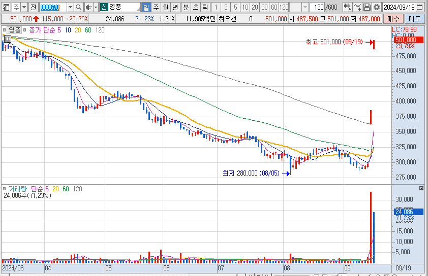 지난주에 이어 공개주식매수 이슈로 상한가를 갔습니다. 영풍과 MBK파트너스가 고려아연의 주식을 공개매수하여 고려아연을 적대적인수하겠다는 방안입니다.