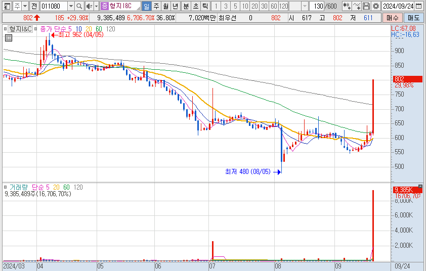 어제에 이어 2연속일 상한가입니다. 양자배터리 개발 기대감으로 상한가를 갔습니다.