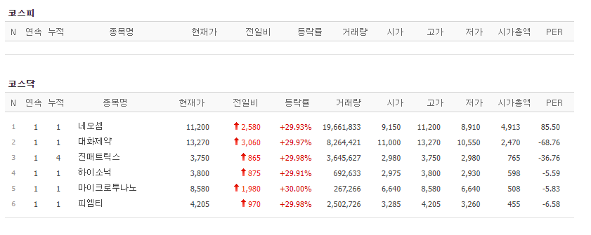 벌써 목요일이 지나갑니다. 오늘의 상한가 알아보겠습니다.