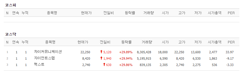 한글과 컴퓨터, 칩스앤미디어, 펄어비스, 선익시스템, 지니뮤직 LG디스플레이, 한빛소프트, 알체라, 엠게임, 와이제이엠게임즈, 씨엠에스에듀, 엔피 등이 있습니다.
