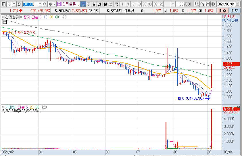 신라섬유 또한 특별한 공시나 호재는 없는것으로 보입니다. 시총이 작은 영향도 있어보입니다.