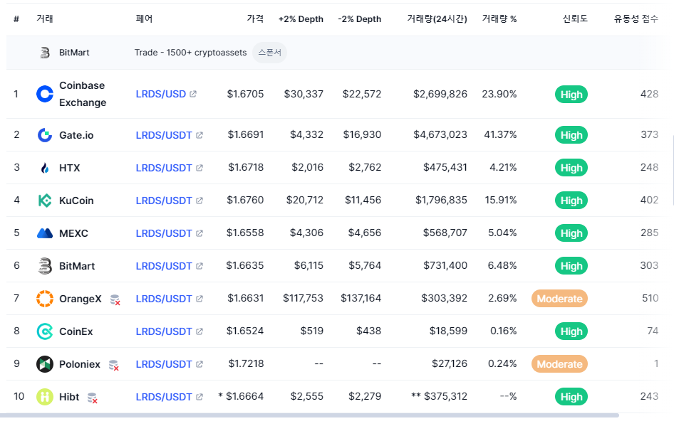 The information about the LRDS token on CoinMarketCap is promising. As mentioned in my previous post, with a circulation of approximately 5 million, the token could be valued at around $10. Currently, there are about 4.67 million in circulation, with a total supply of 100 million.