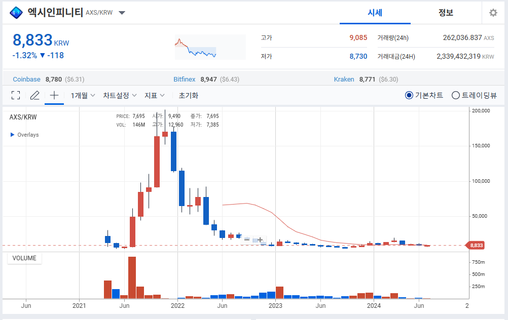 엑시인피니티, 샌드박스, 빅타임 등과 시총을 비슷하게 하고