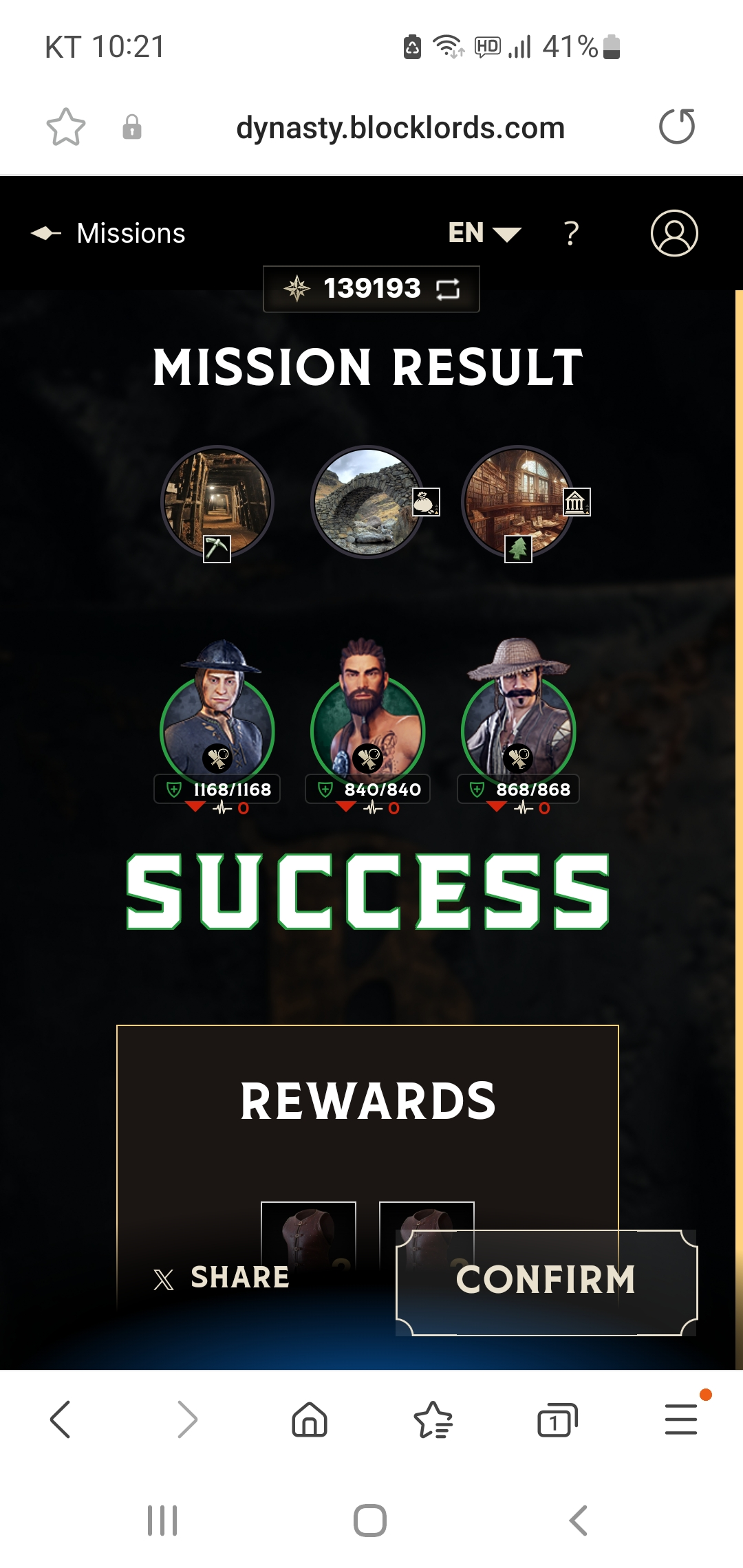 미션은 최대 3개의 캐릭터를 내보내어 골드를 얻거나 무기 아이템을 얻을 수 있습니다.