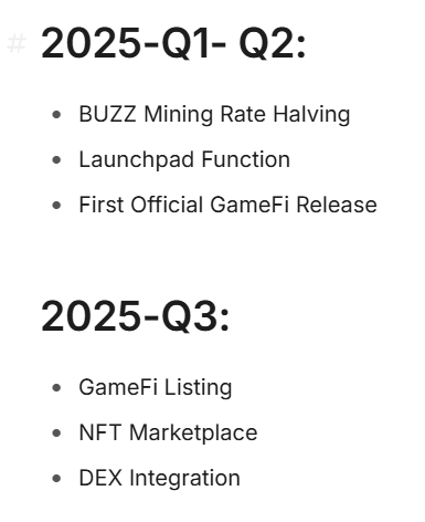 BUZZ토크노믹스는 아직 진행중이며 로드맵은 다음과 같습니다.